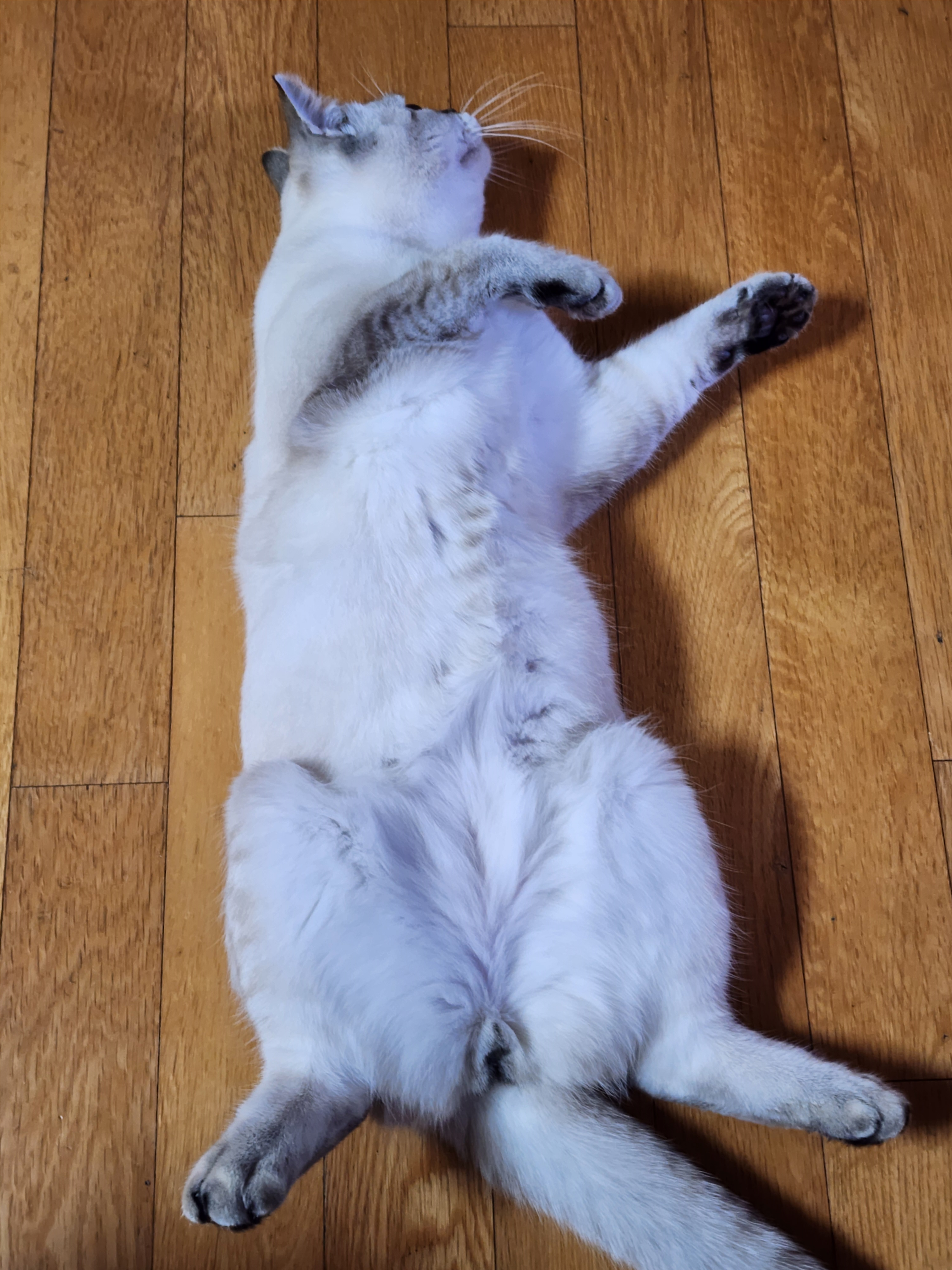 • 급소 노출: 고양이에게 배는 가장 취약한 급소입니다. 이곳을 보여준다는 것은 "당신은 나를 절대 공격하지 않을 사람"이라는 확신이 있을 때만 가능합니다.