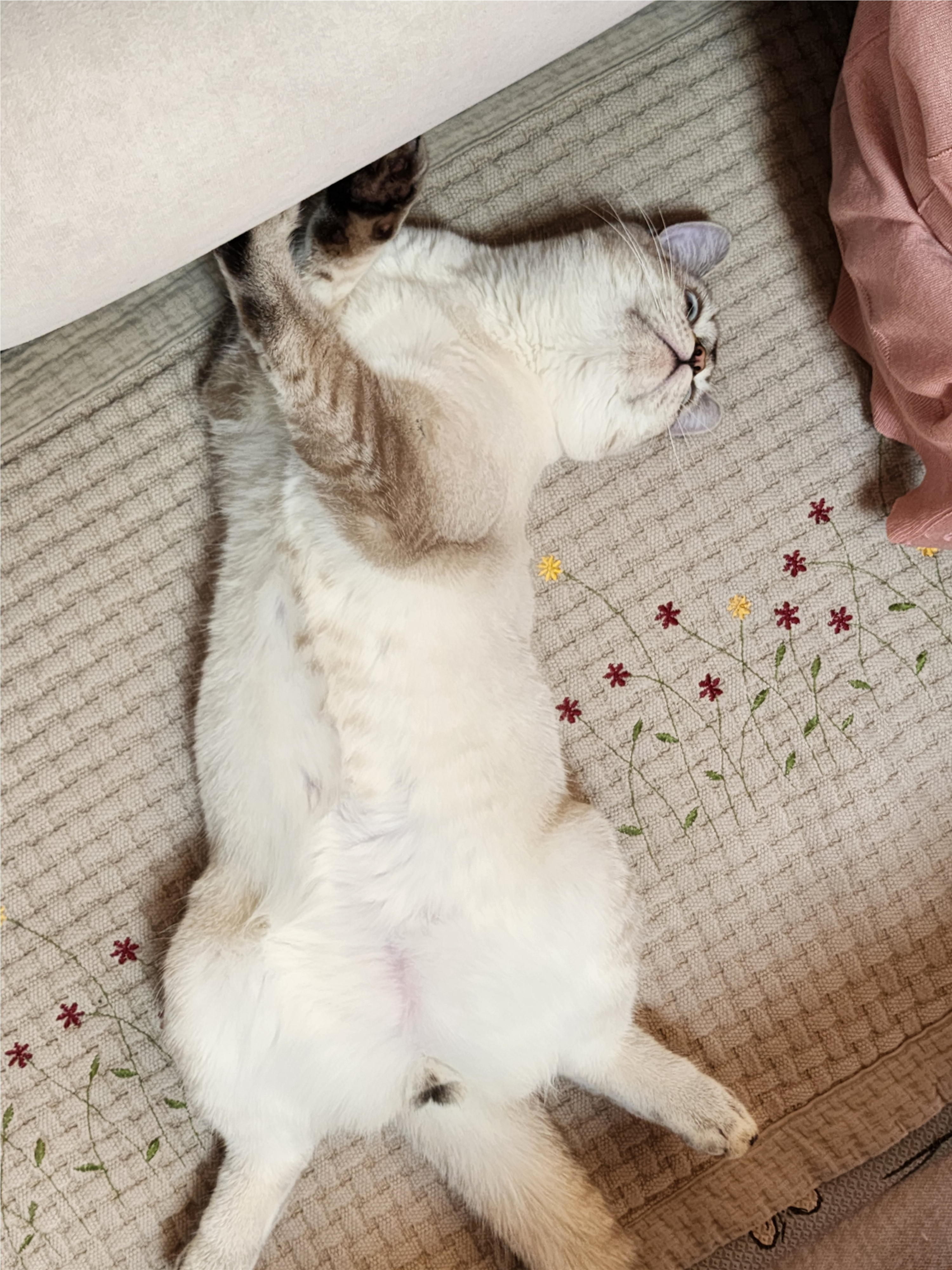 일부 고양이는 배 만짐을 비교적 잘 허용하기도 하죠.