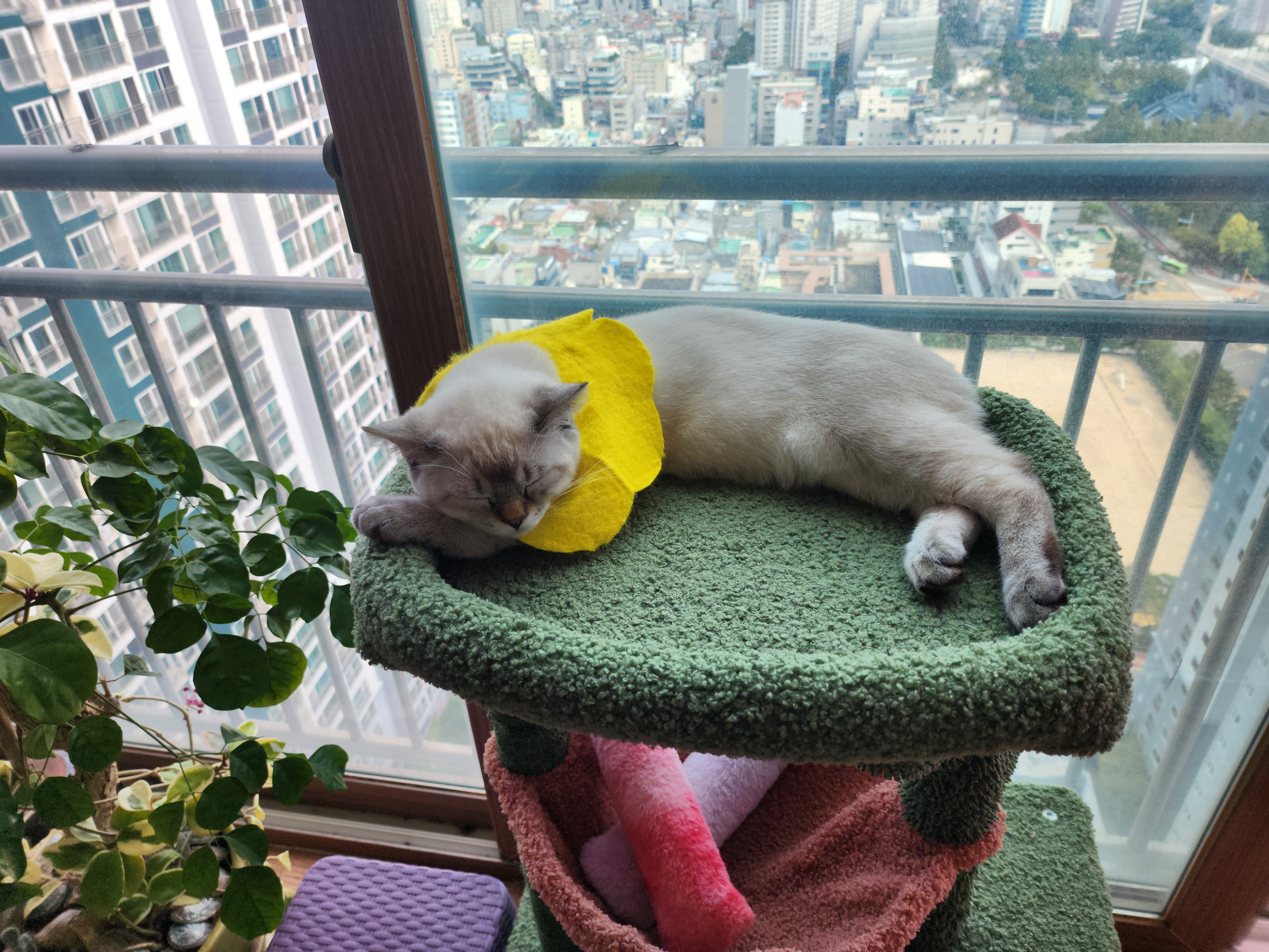 - 수술 부위를 절대 고양이가 핥지 못하게 해야 합니다.